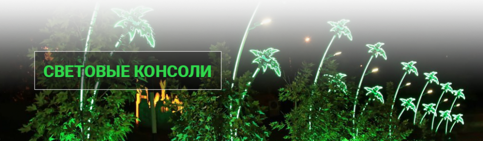 Украшения световые консоли Laitcom — элементы оформления интерьеров, экстерьеров, входных групп и разнообразных объектов. Изделия представляют собой тематическую декоративную конструкцию, выполненную из металла, на которой размещены светодиоды. Такие световые консоли Laitcom выполняют роль не только украшения, но и освещают территорию поблизости. Композиции могут быть самыми разнообразными и размещаться в горизонтальных, вертикальных плоскостях.
