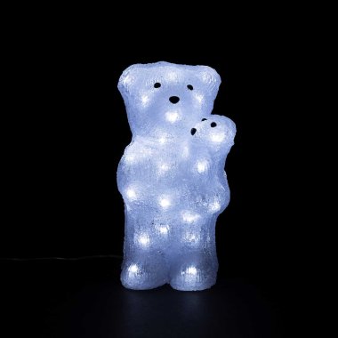 Светодиодный акриловый Мишка с медвеженком Размер: 16 x16 x 30 см Количество диодов: 40 led Цвет свечения: белый Подводящий кабель: 5м Не сменные лампочки Источник питания: трансформатор 220/24V Цвет провода: прозрачный