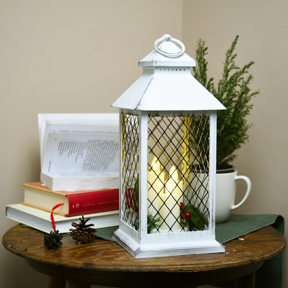 Светодиодный Фонарь Тепло-Белый с Светодиодными Свечами на Батарейках