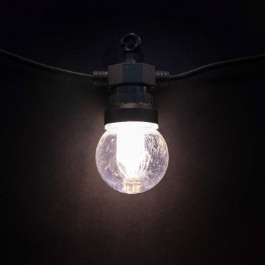 Светодиодная Гирлянда Прозрачная Колба 5м Белая 24В, 10 LED, Провод Черный ПВХ, IP54