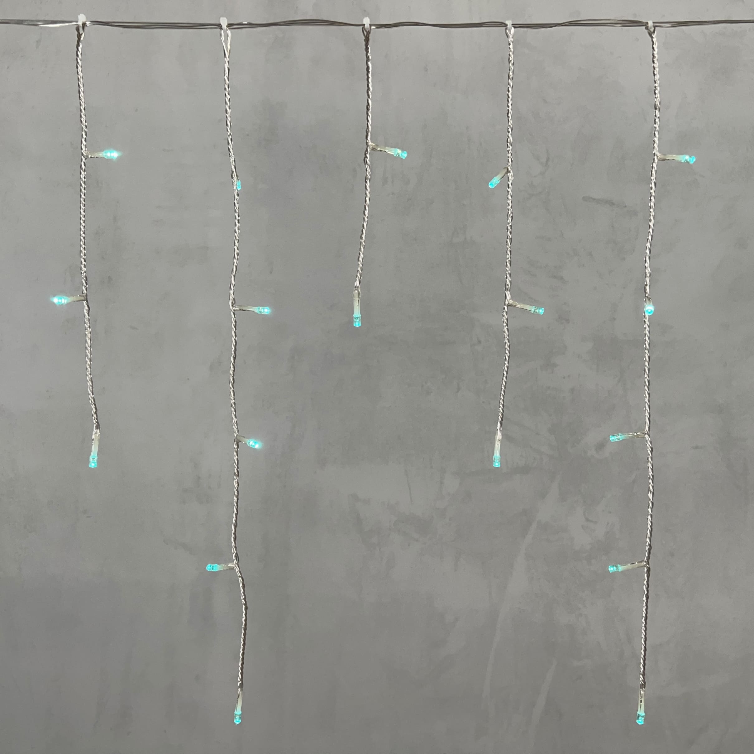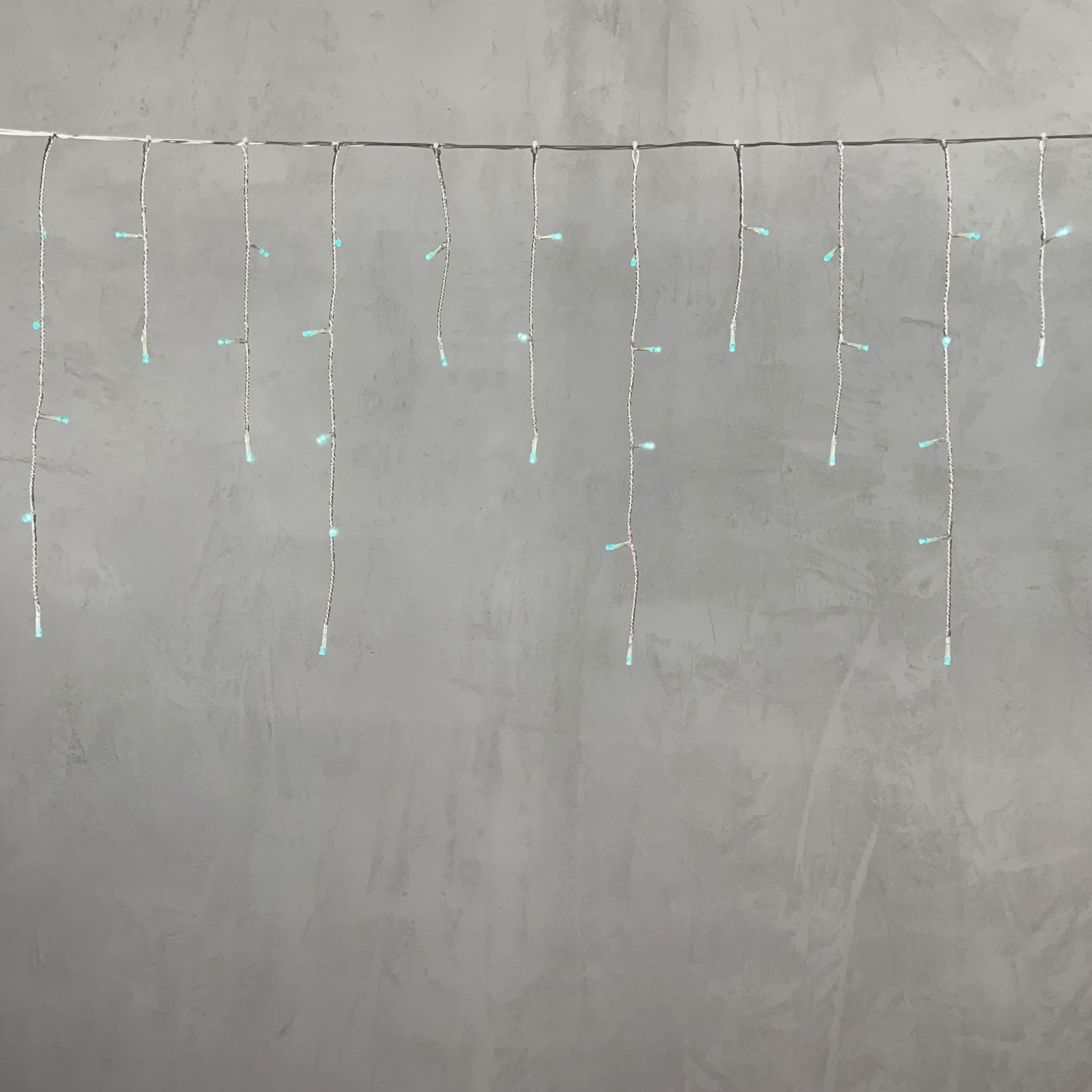 Гирлянда Бахрома на Батарейках 3 х 0,5 м Аква, 100 LED, Провод Прозрачный Силикон, IP65