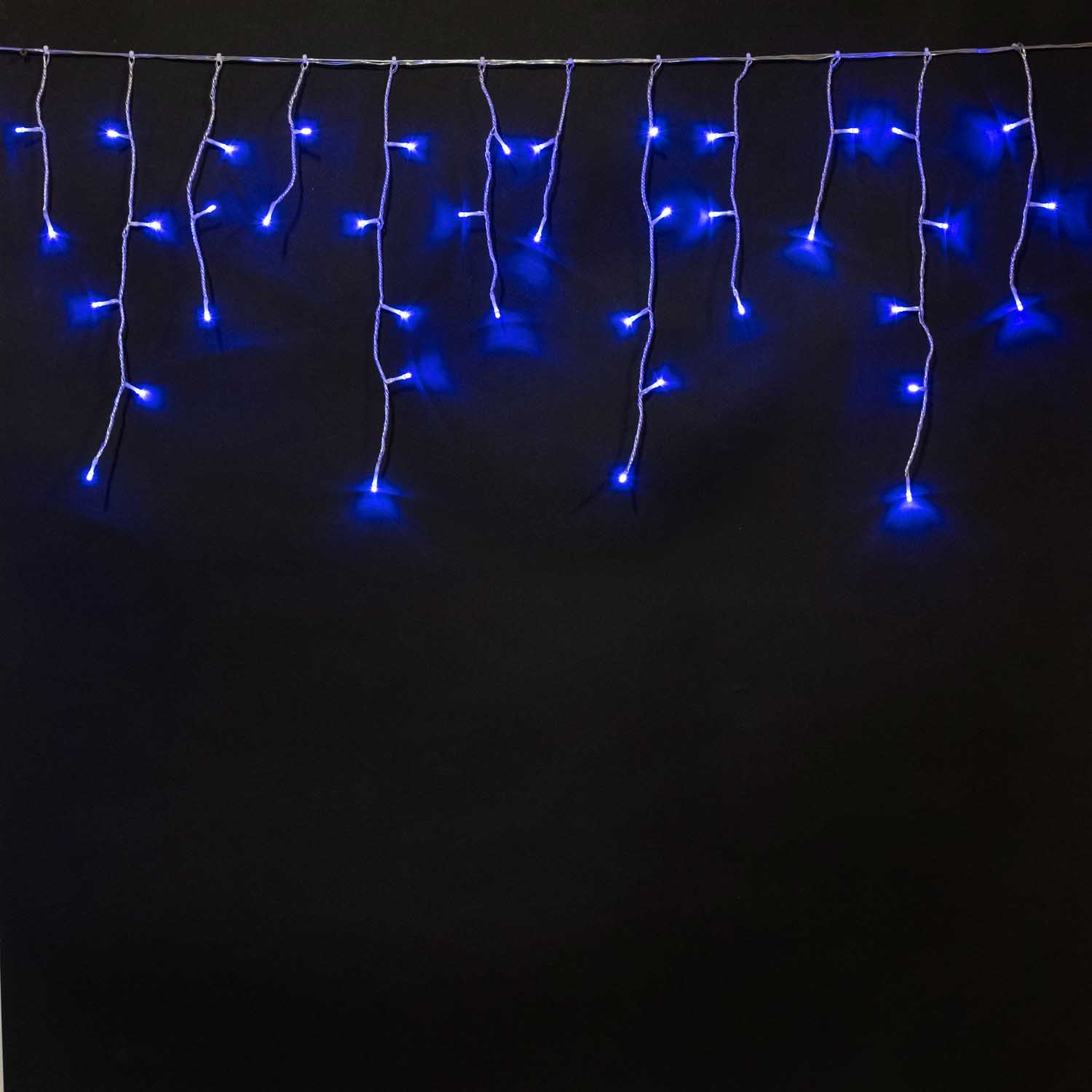 Гирлянда Бахрома на Батарейках 3 х 0,5 м Синяя, 100 LED, Провод Прозрачный Силикон, IP65