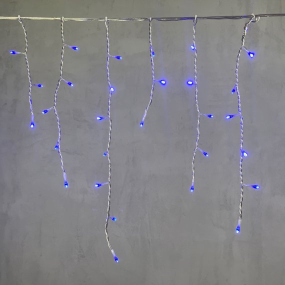 Гирлянда Бахрома 3 x 0,5 м Синяя 220В, 150 LED, Провод Прозрачный Силикон, IP65