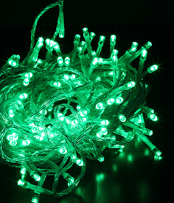 Гирлянда Нить 10м Зеленая 24В, 100 LED, Провод Прозрачный Силикон, IP65
