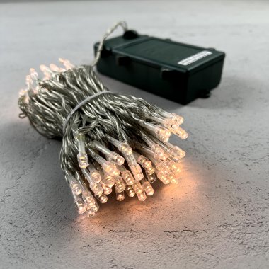 Гирлянда Нить на Батарейках с Таймером 10м Хани-Голд, 100 LED, Провод Прозрачный Силикон, IP6