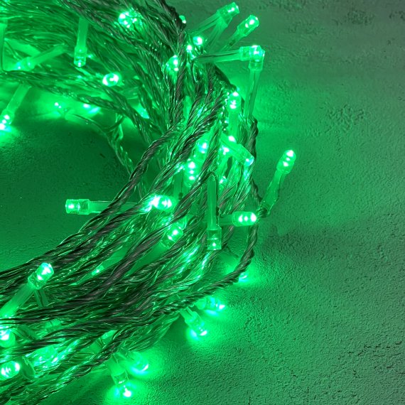 Гирлянда Нить 20м Зеленая с Возможностью Управления 24В, 200 LED, Провод Прозрачный Силикон,