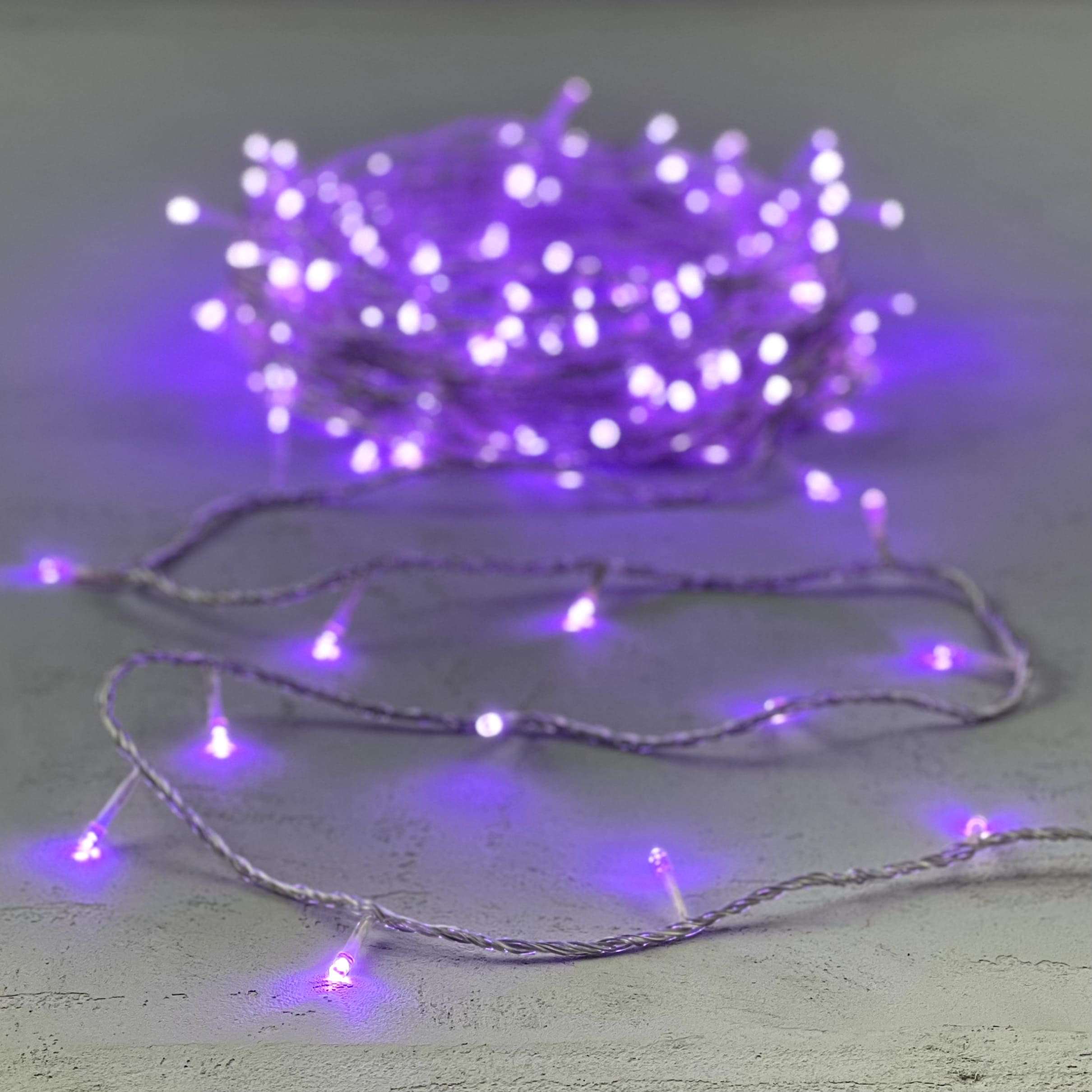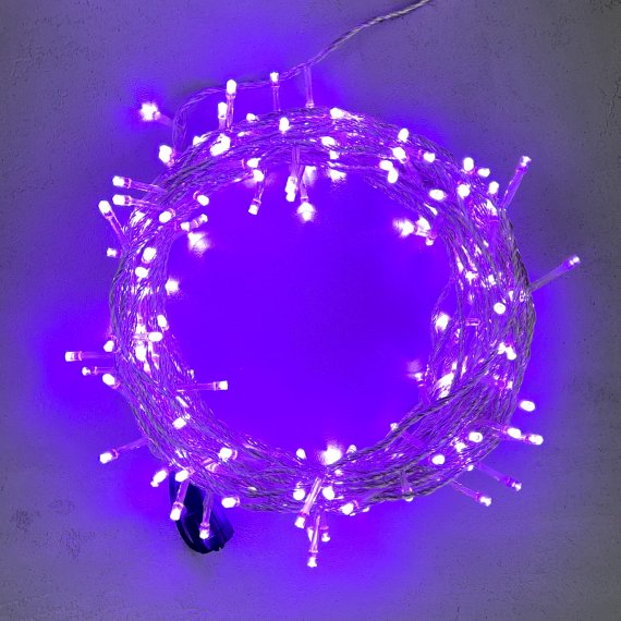 Гирлянда Нить 20м Лиловая с Возможностью Управления 24В, 200 LED, Провод Прозрачный Силикон,