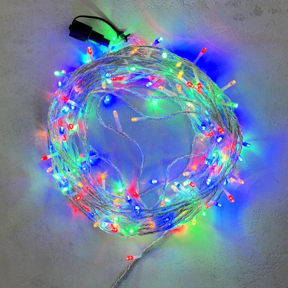 Гирлянда Нить 20м Разноцветная с Возможностью Управления 24В, 200 LED, Провод Прозрачный Сили