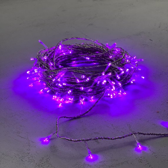 Гирлянда Нить 20м Пурпурная с Возможностью Управления 24В, 200 LED, Провод Прозрачный Силикон