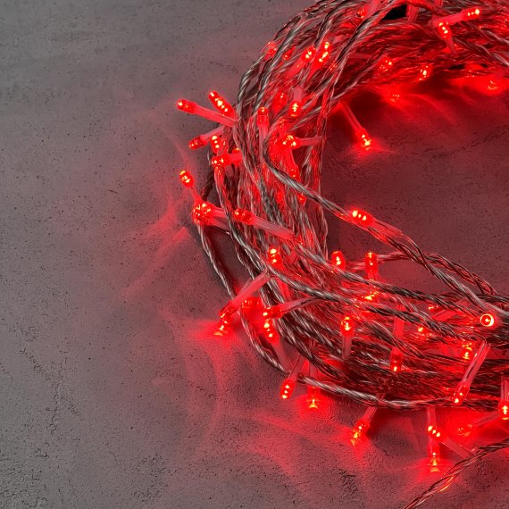 Гирлянда Нить 20м Красная с Возможностью Управления 24В, 200 LED, Провод Прозрачный Силикон,