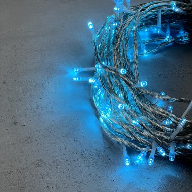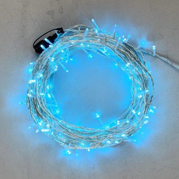 Гирлянда Нить 20м Небесно-Голубая с Возможностью Управления 24В, 200 LED, Провод Прозрачный С