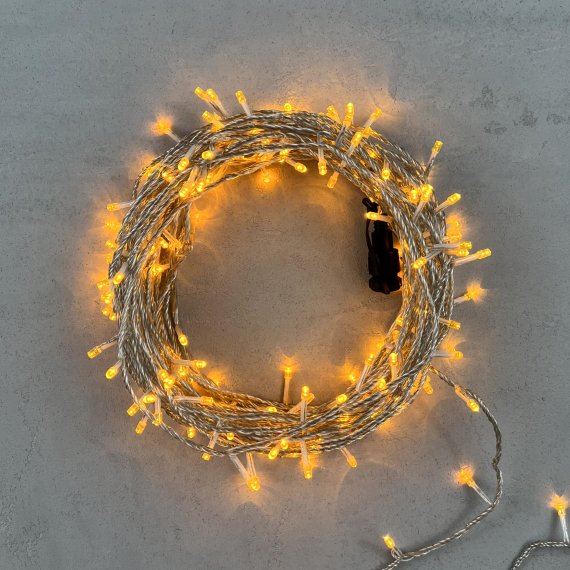 Гирлянда Нить 20м Желтая с Возможностью Управления 24В, 200 LED, Провод Прозрачный Силикон, I