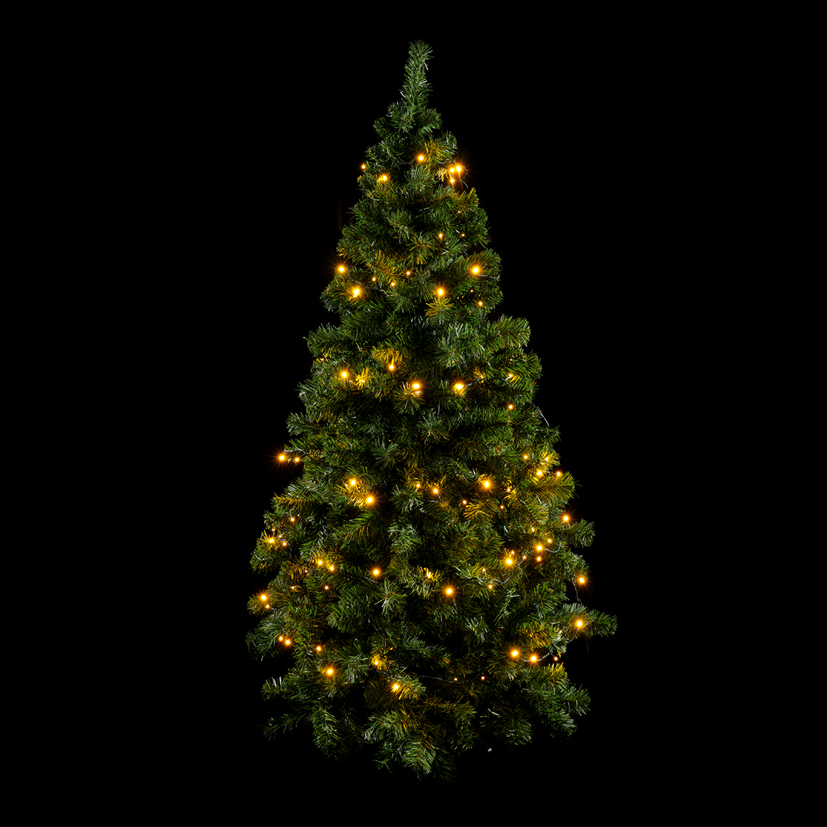 Светодиодная Гирлянда на ёлку Высотой 1,5м Тепло-Белая 220В, 120 LED, Провод Зеленый ПВХ, IP2