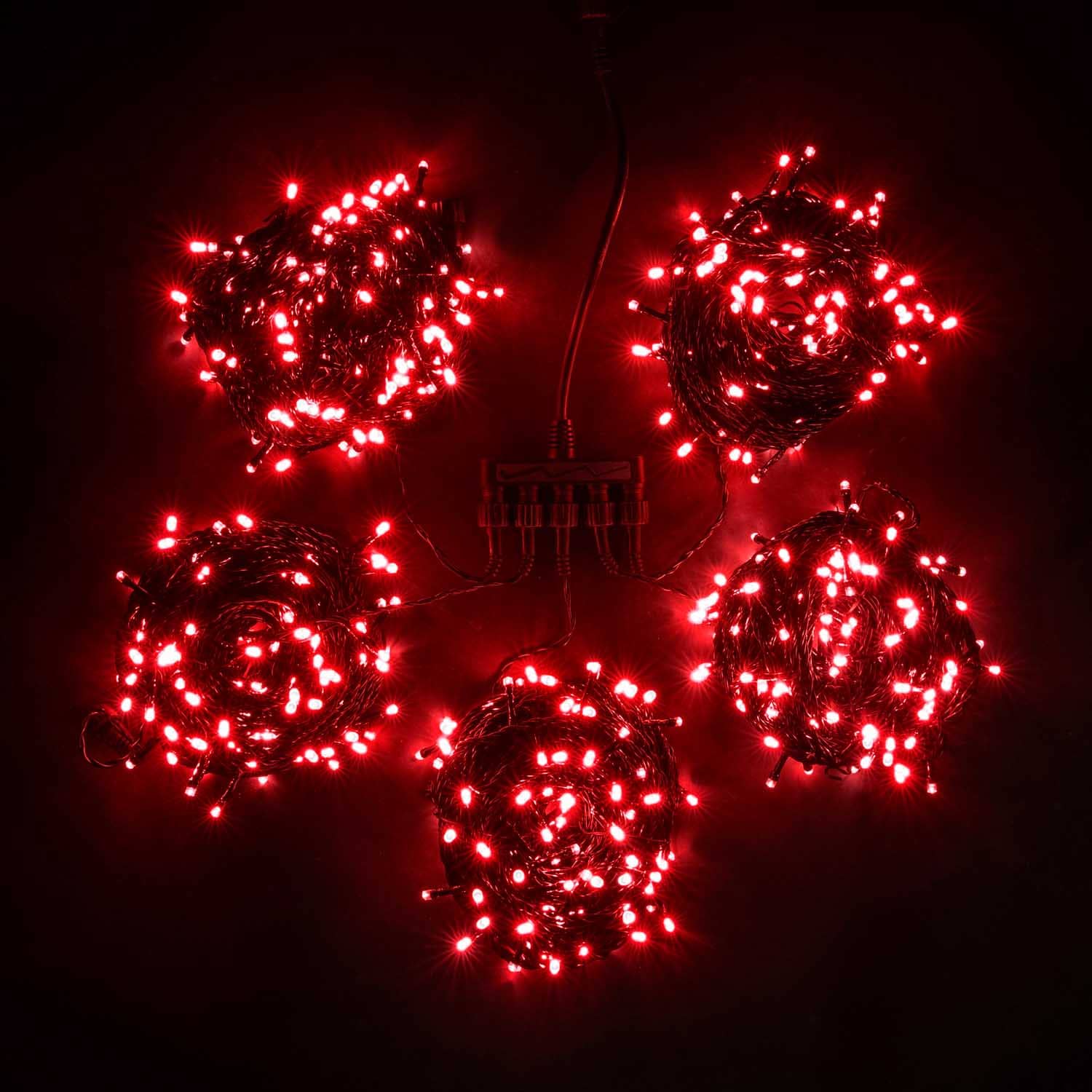 Комплект 5 Красных Нитей по 20м с Мерцанием, 1000 LED, Провод Черный ПВХ, IP54