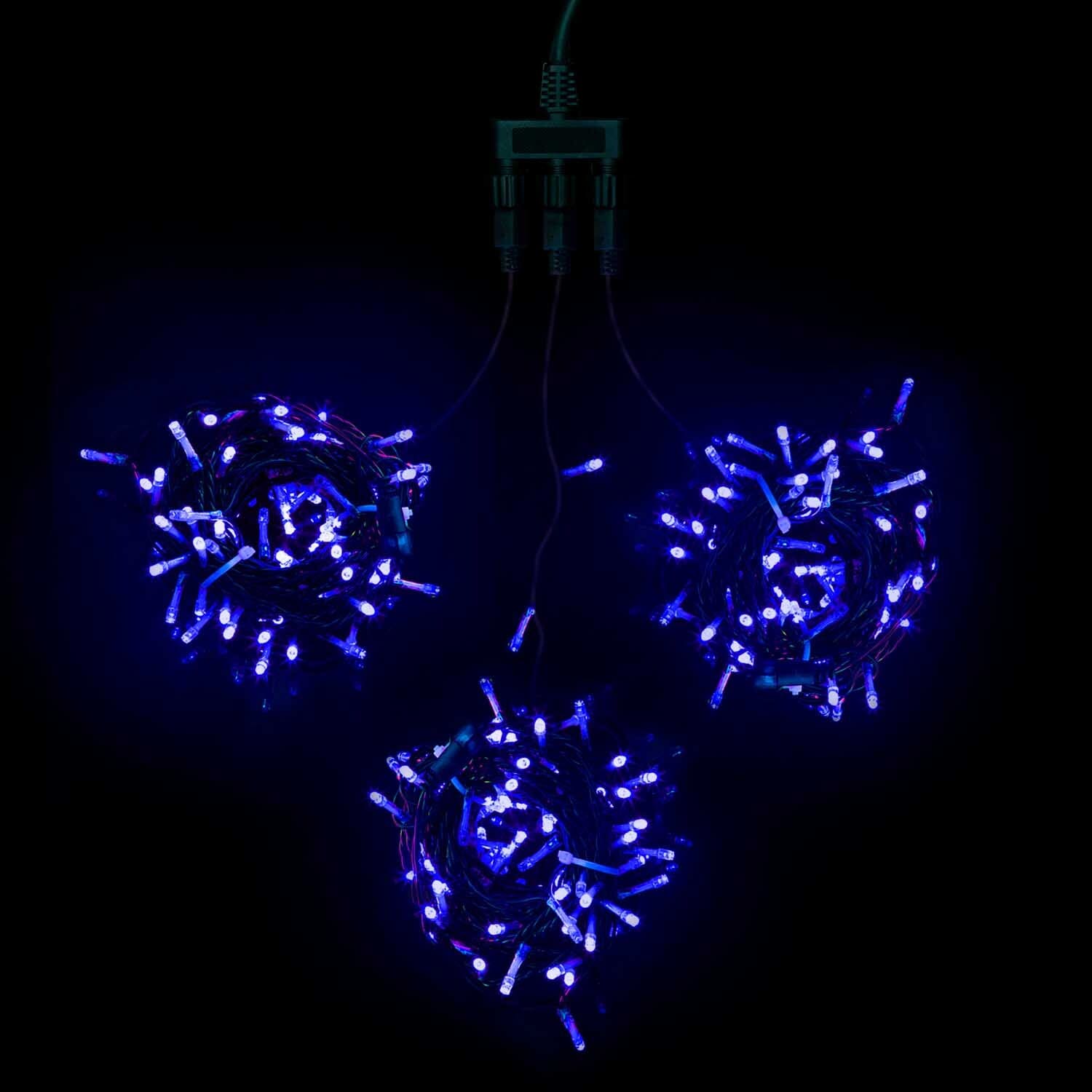Комплект 3 Синих Нити с Мерцанием Белого Диода по 20м, 600 LED, Провод Черный ПВХ, IP54