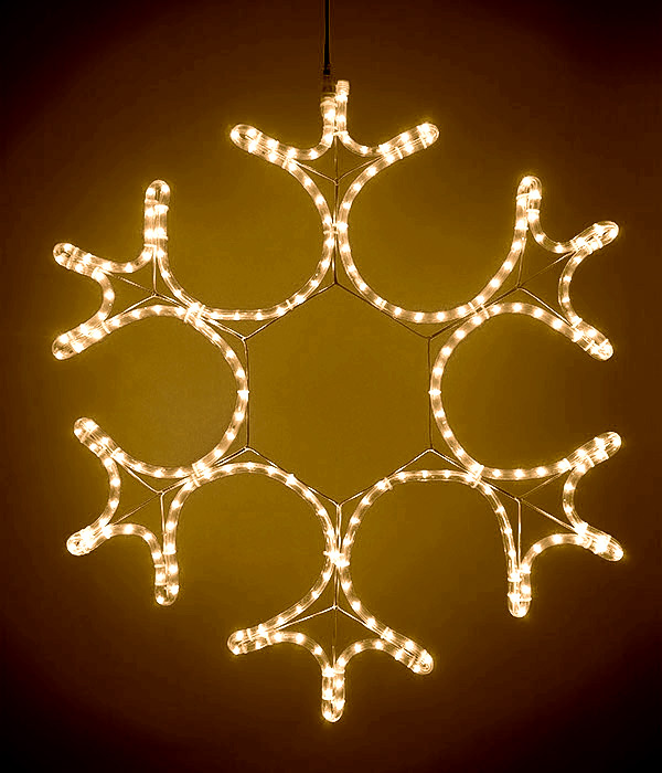 Светодиодная Снежинка ?0,55м Тепло-Белая, Дюралайт на Металлическом Каркасе, IP54