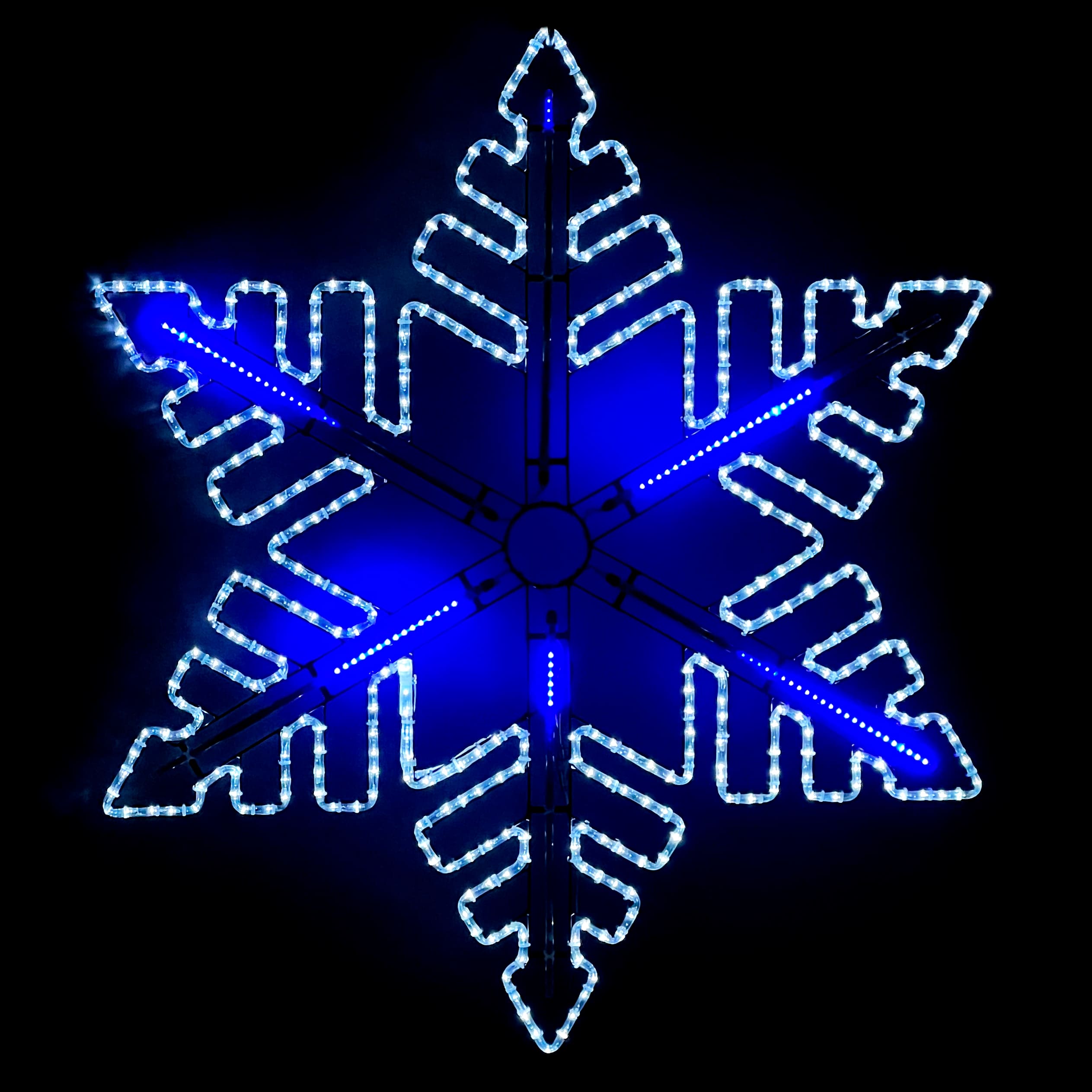 Светодиодная Снежинка "Black Edition" ?1,3м Белая с Динамикой Синего Диода 24В, Дюралайт на Металлическом Каркасе, IP54