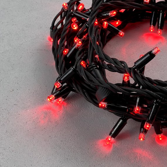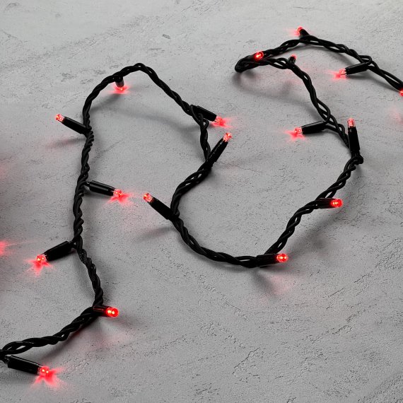 Гирлянда Нить 10м Красная 220В, 100 LED, Провод Черный Каучук, IP54