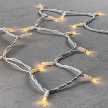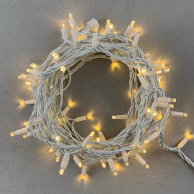 Гирлянда Нить 10м Тепло-Белая 24В, 100 LED, Провод Белый Каучук, IP65
