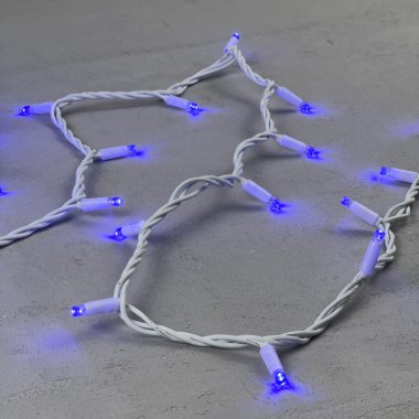 Гирлянда Нить 10м Синяя 220В, 100 LED, Провод Белый Каучук, IP65