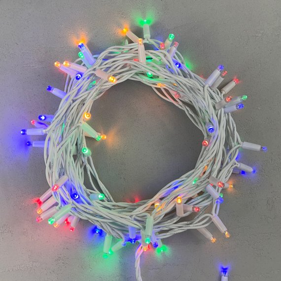 Гирлянда Нить 10м Разноцветная 220В, 100 LED, Провод Белый Каучук, IP65