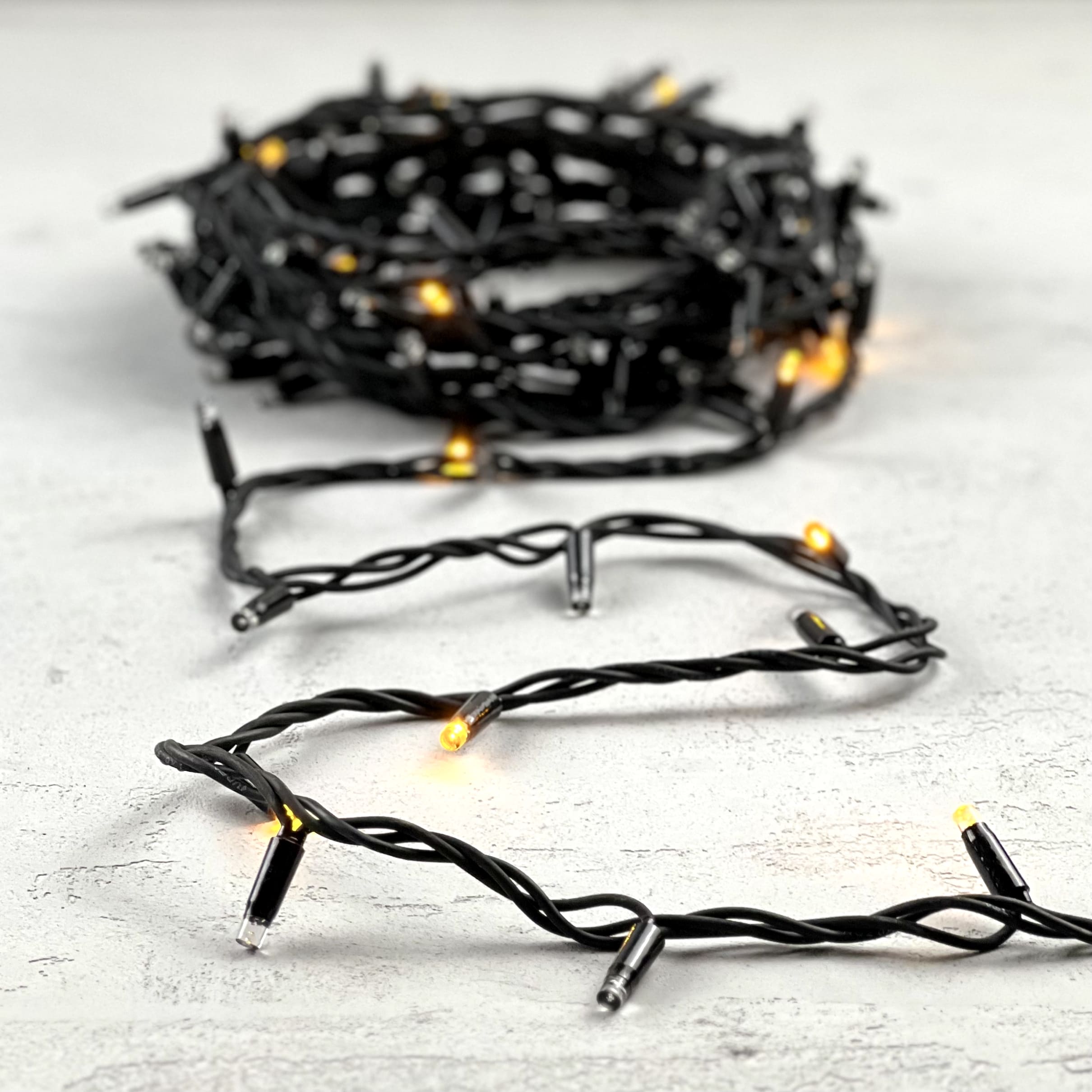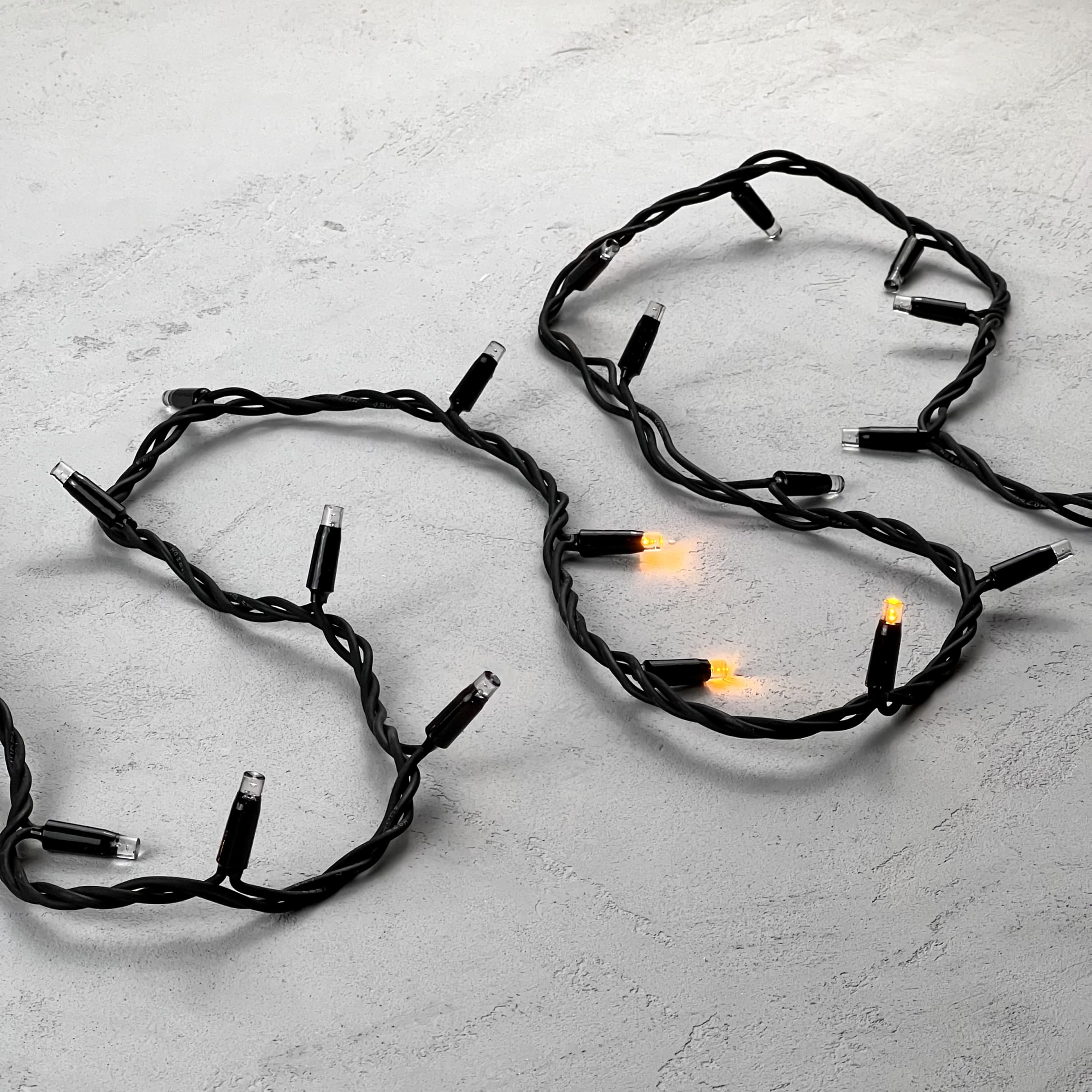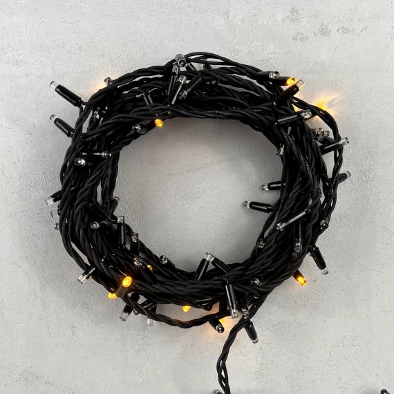 Гирлянда Нить 10м Желтая с Мерцанием Каждого Диода 220В, 100 LED, Провод Черный Каучук, IP54