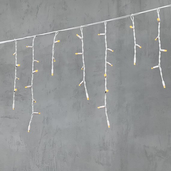 Гирлянда Бахрома 3,1 x 0,5 м Желтая 220В, 120 LED, Провод Белый Каучук, IP54