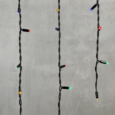 Гирлянда "Бахрома" ("Айсикл") представляет собой гибкий горизонтальный шнур со свисающими вертикально нитями разной длины, на которых через каждые 10 сантиметров располагаются светодиоды.