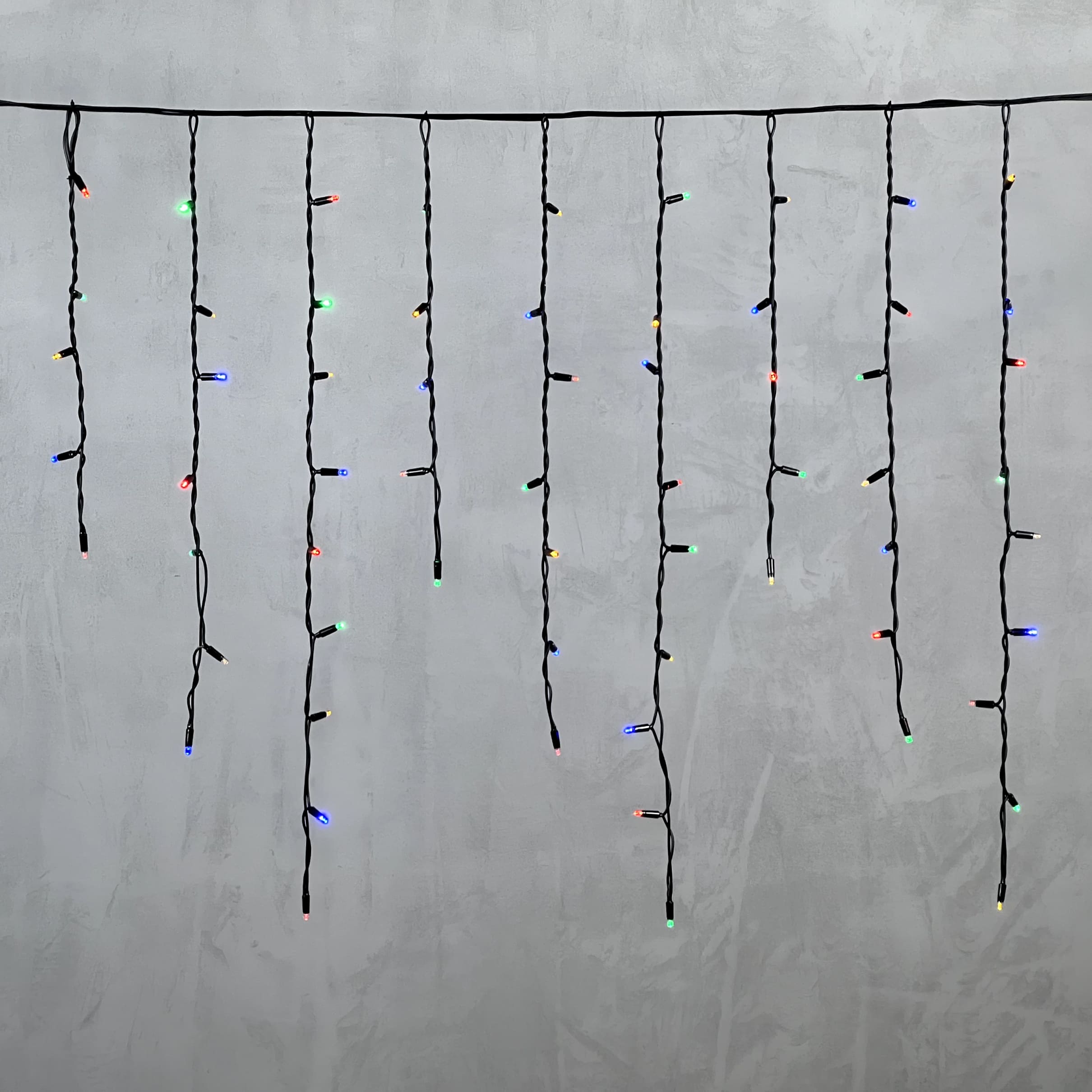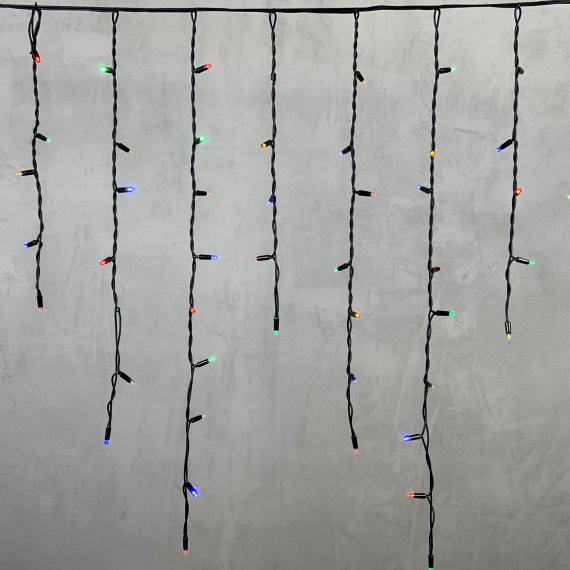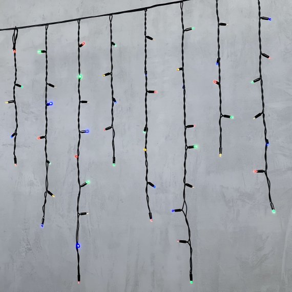 Гирлянда Бахрома 3,2 x 0,9 м Разноцветная 220В, 168 LED, Провод Черный Каучук, IP54