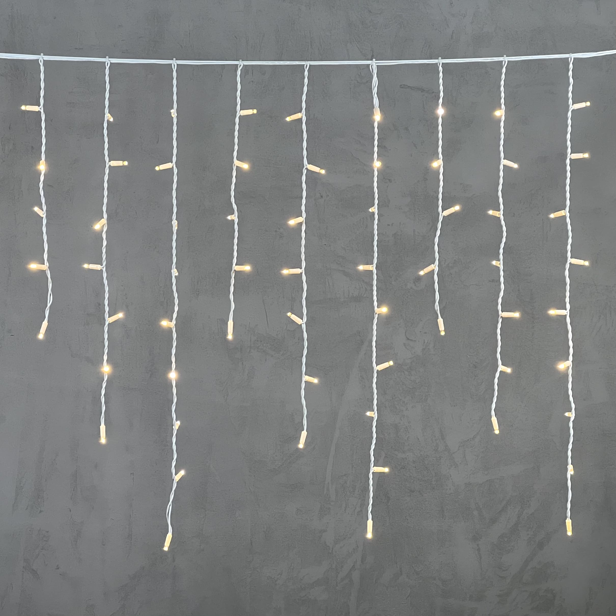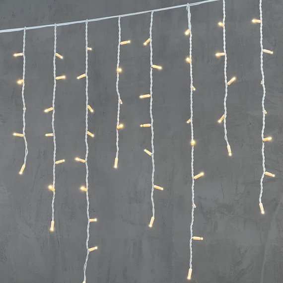 Гирлянда Бахрома 3,2 x 0,9 м Тепло-Белая 220В, 168 LED, Провод Белый Каучук, IP54