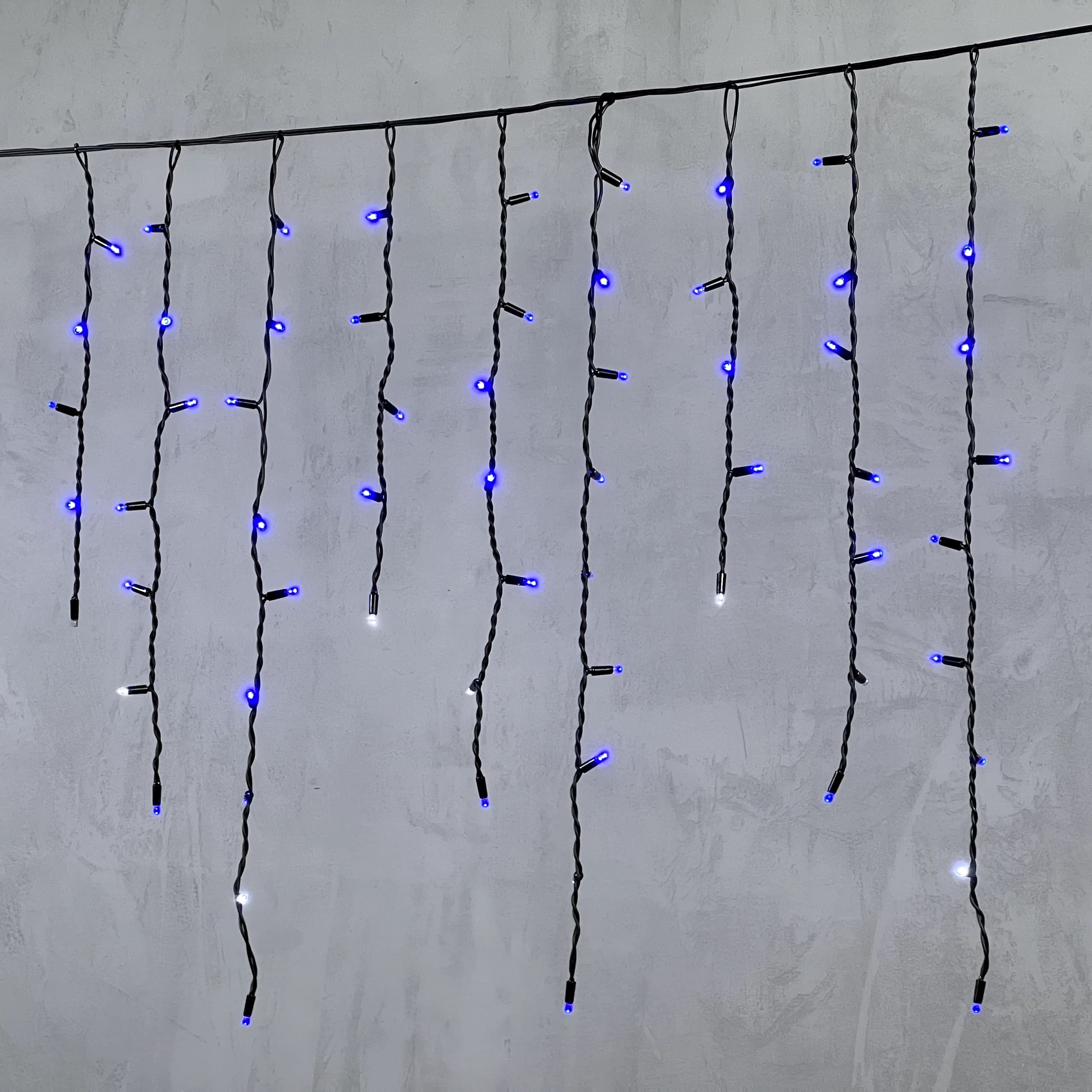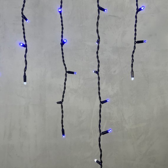 Гирлянда Бахрома 3,2 x 0,9 м Синяя с Мерцанием Белого Диода 220В, 168 LED, Провод Черный Каучук, IP65