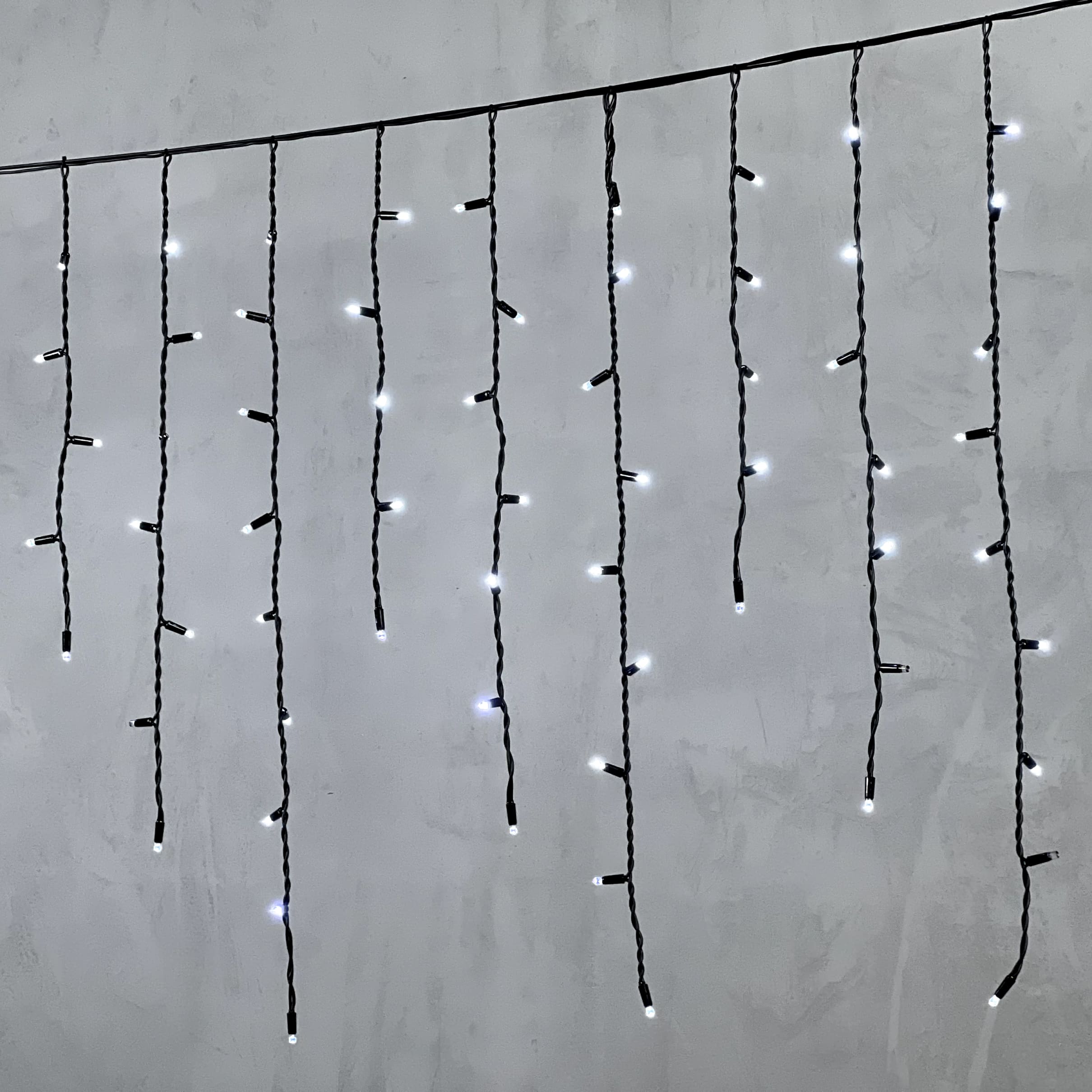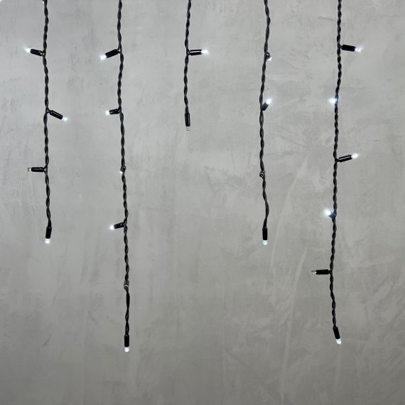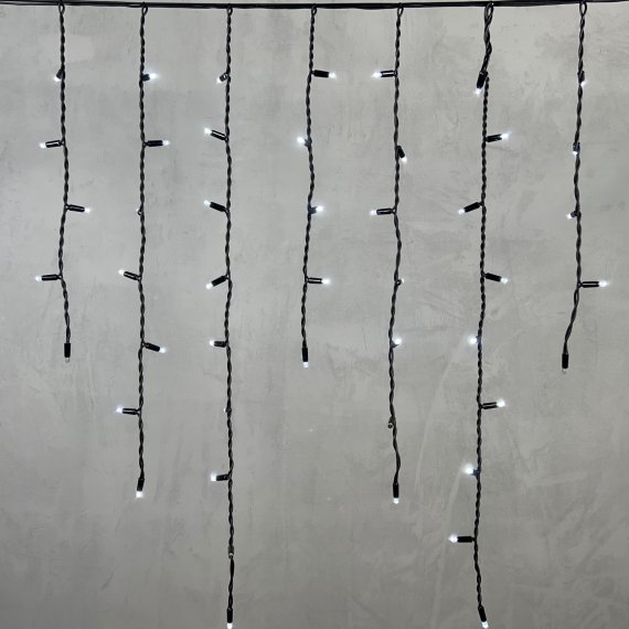 Гирлянда Бахрома 3,2 x 0,9 м Белая с Мерцанием Белого Диода 220В, 168 LED, Провод Черный Каучук, IP65