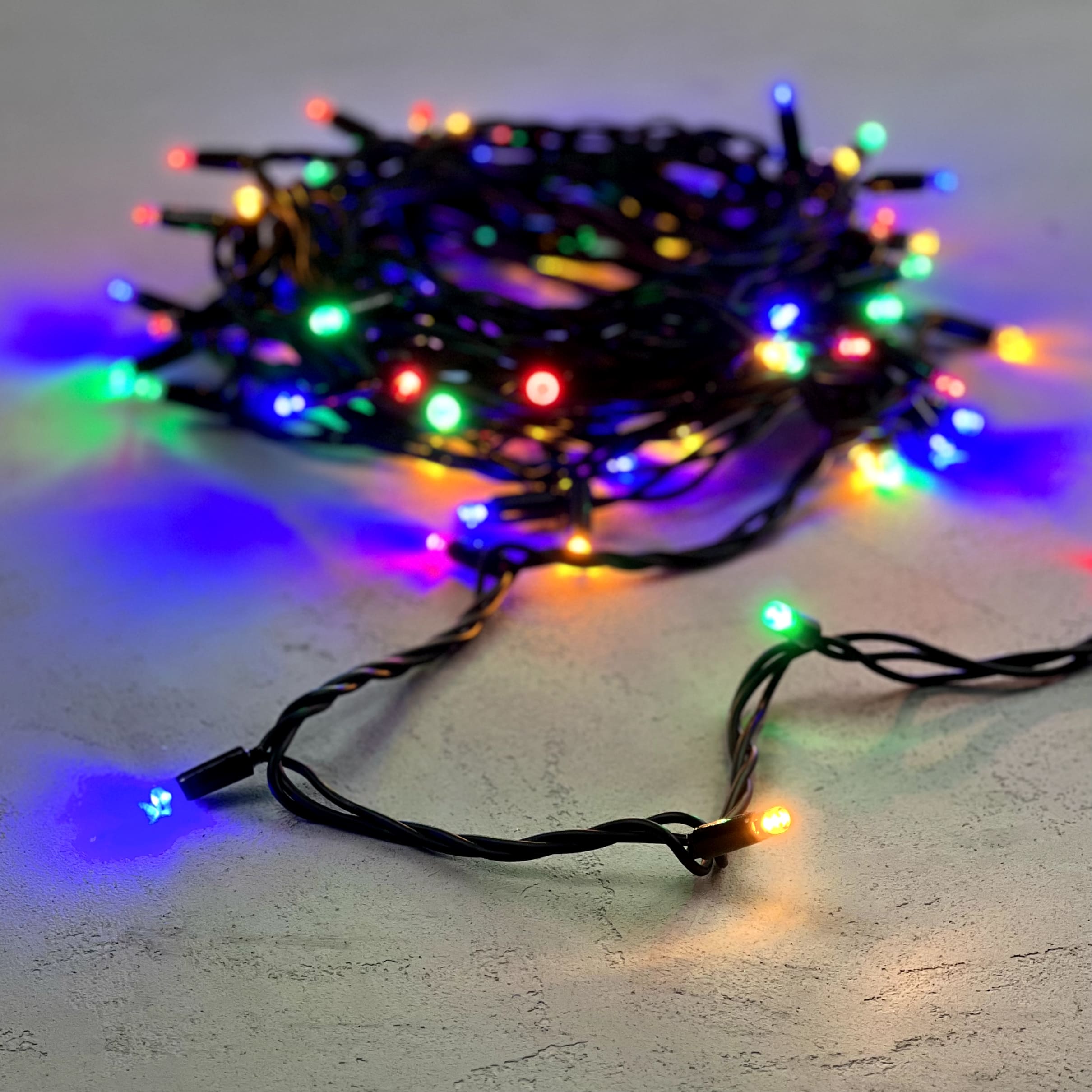 Гирлянда Нить 10м Разноцветная 220В, 75 LED, Провод Черный Каучук, IP54