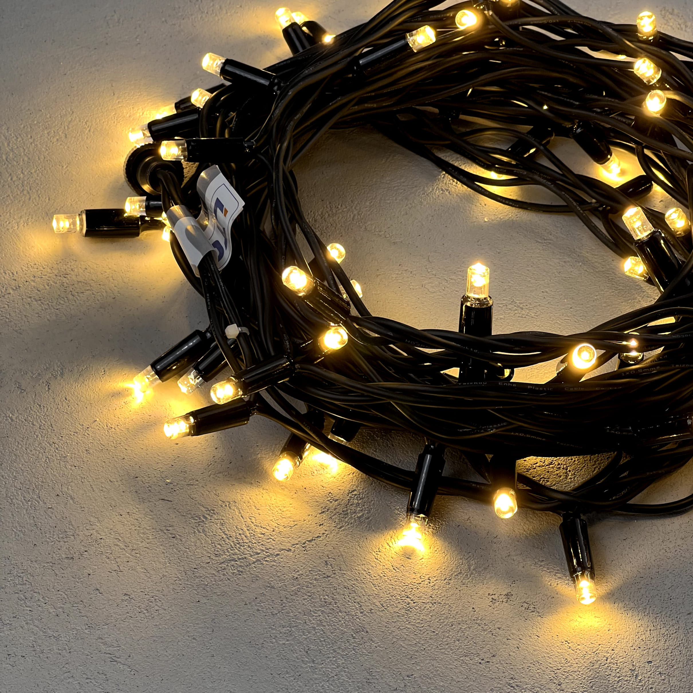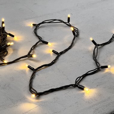 Гирлянда Нить 10м Тепло-Белая 220В, 75 LED, Провод Черный Каучук, IP54