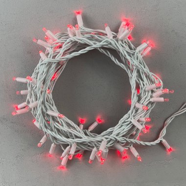 Гирлянда Нить 10м Красная 24В, 75 LED, Провод Белый Каучук, IP65