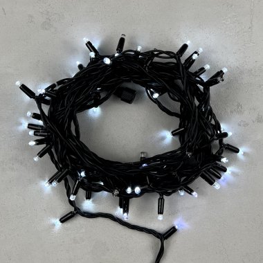 Гирлянда Нить 10м Белая с Мерцанием Белого Диода 24В, 75 LED, Провод Черный Каучук, IP65