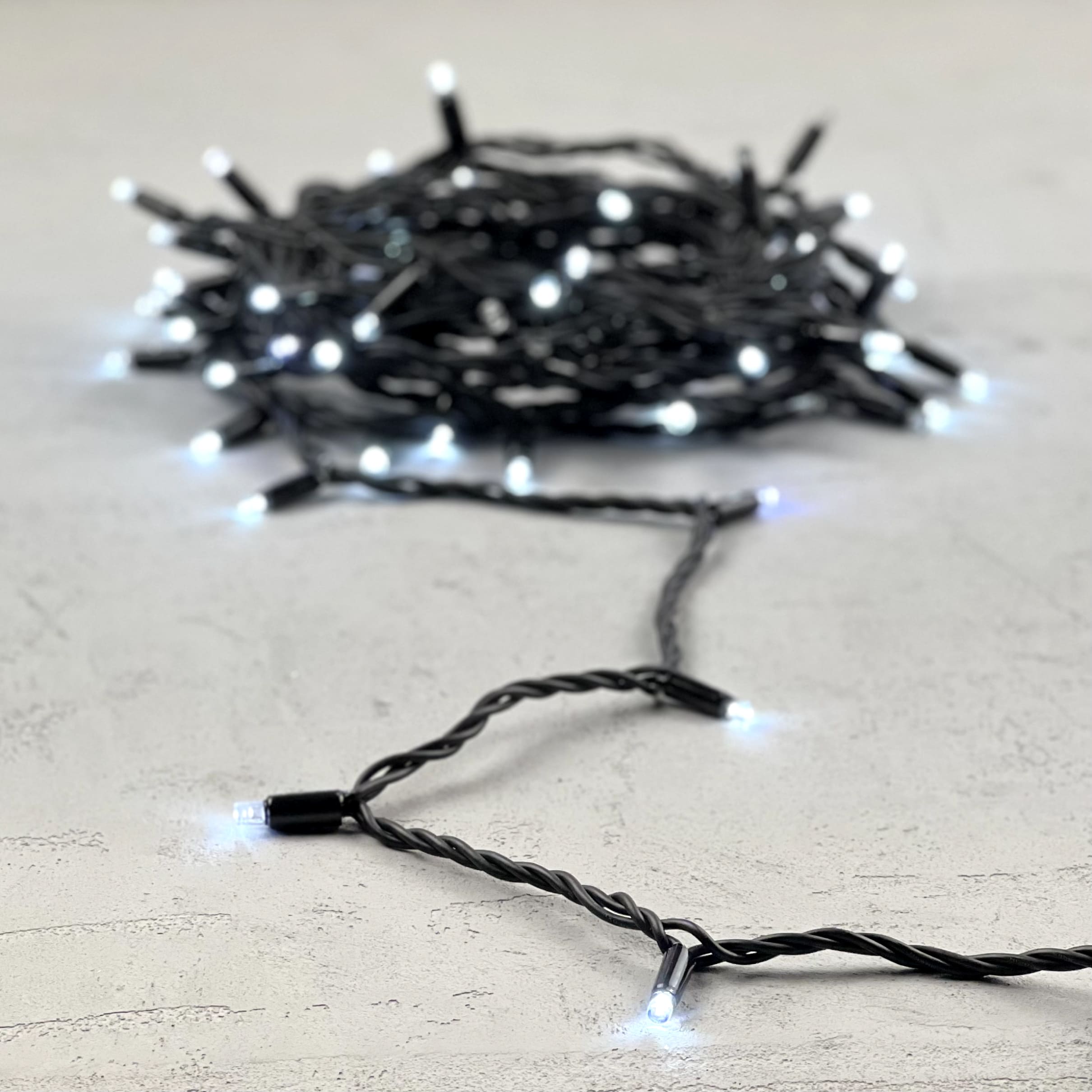 Гирлянда Нить 10м Белая с Мерцанием Белого Диода 220В, 75 LED, Провод Черный Каучук, IP54
