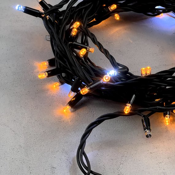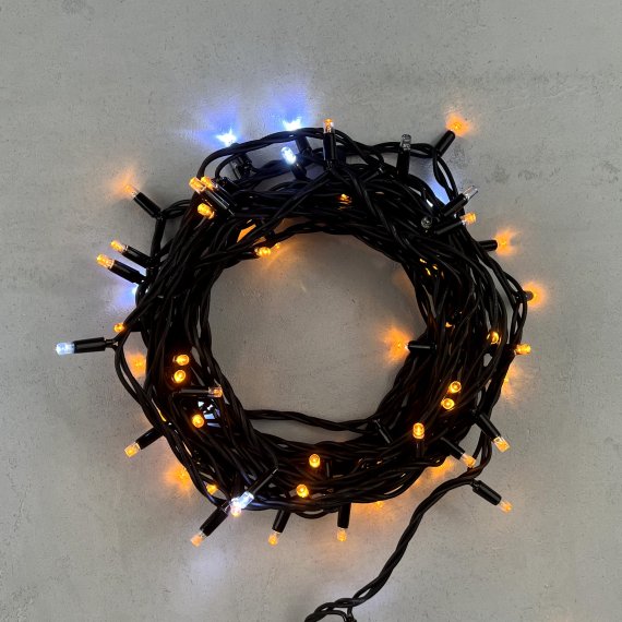 Гирлянда Нить 10м Желтая с Мерцанием Белого Диода 220В, 75 LED, Провод Черный Каучук, IP54