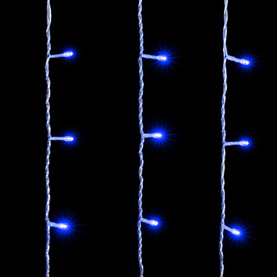 Гирлянда Занавес 2 x 1 м Синий 220В, 200 LED, Провод Прозрачный ПВХ, IP54