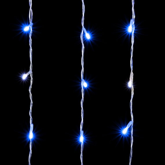 Гирланда Занавес 2 x 2 м Синий с Мерцанием Белого Диода 220В, 400 LED, Провод Прозрачный ПВХ,