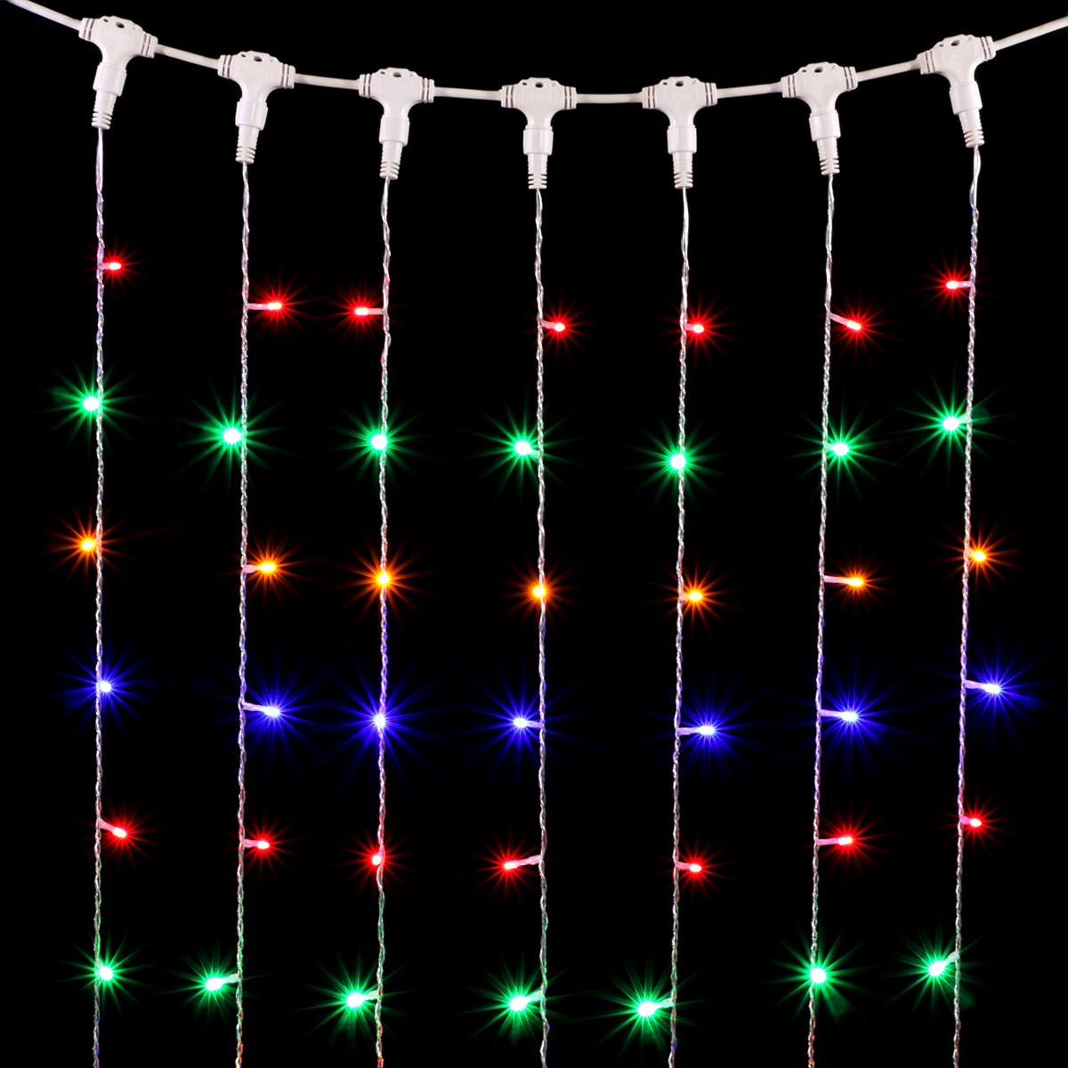 Гирлянда Занавес 2 x 3 м Разноцветный 220В, 600 LED, Провод Прозрачный ПВХ, IP54