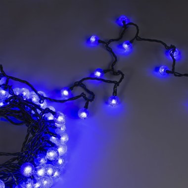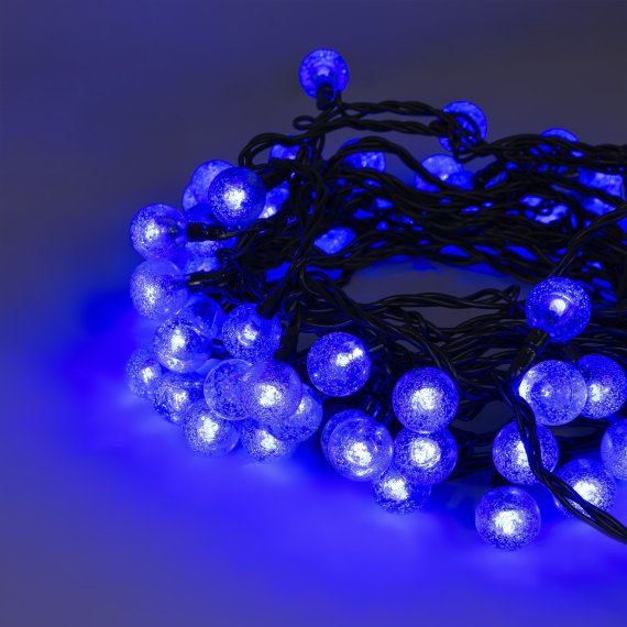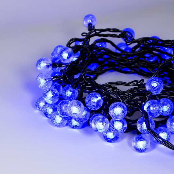 Гирлянда «Шарики» 10м Синяя 9В, Диаметр Шарика 23мм, 100 LED, Провод Черный ПВХ, IP54
