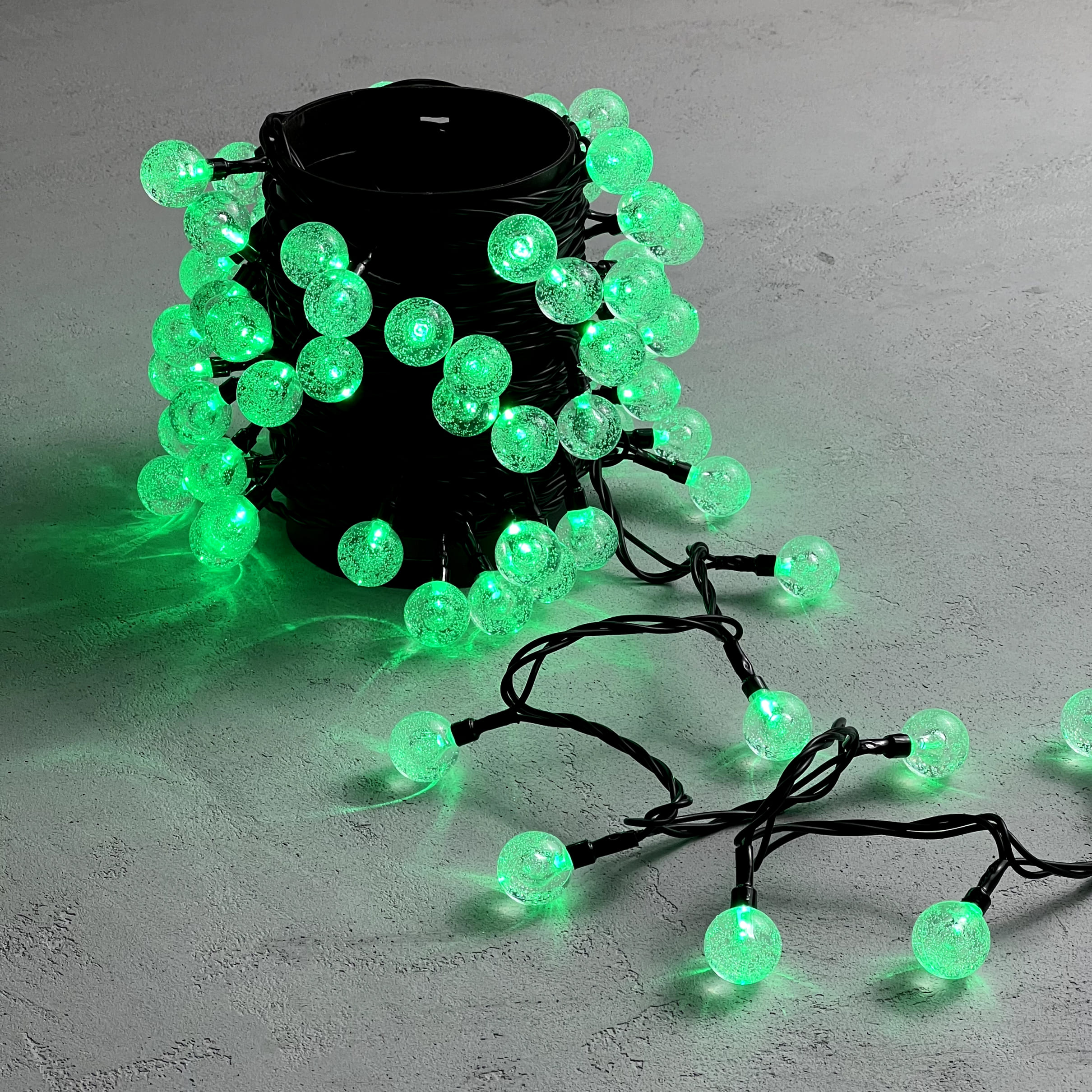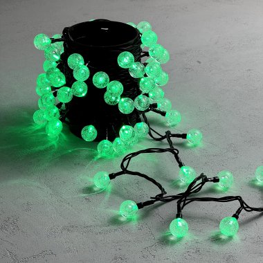 Гирлянда «Шарики» 10м Зеленая 9В, Диаметр Шарика 23мм, 100 LED, Провод Черный ПВХ, IP54
