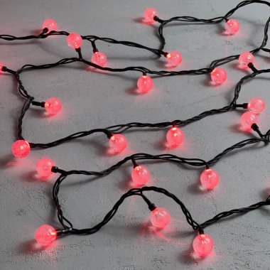 Гирлянда «Шарики» 10м Красная 9В, Диаметр Шарика 23мм, 100 LED, Провод Черный ПВХ, IP54