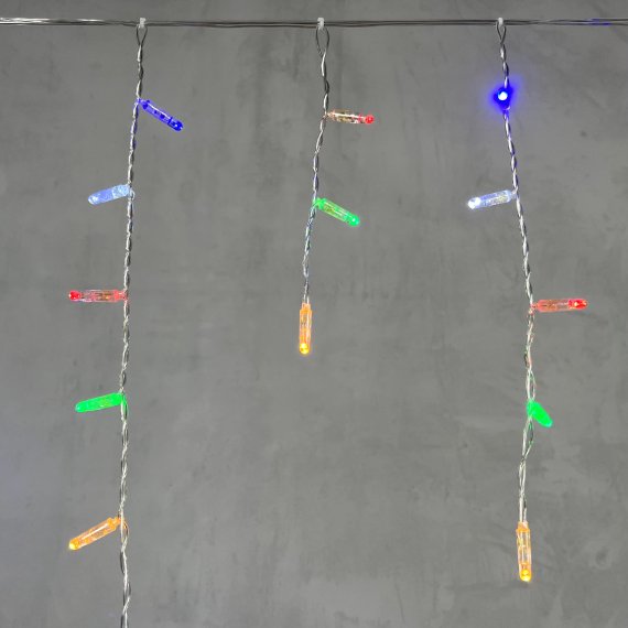 Светодиодная бахрома с колпачком 3,1x0,5м, прозр. пр. мульти (мерцание БЕЛЫЙ ДИОД),
