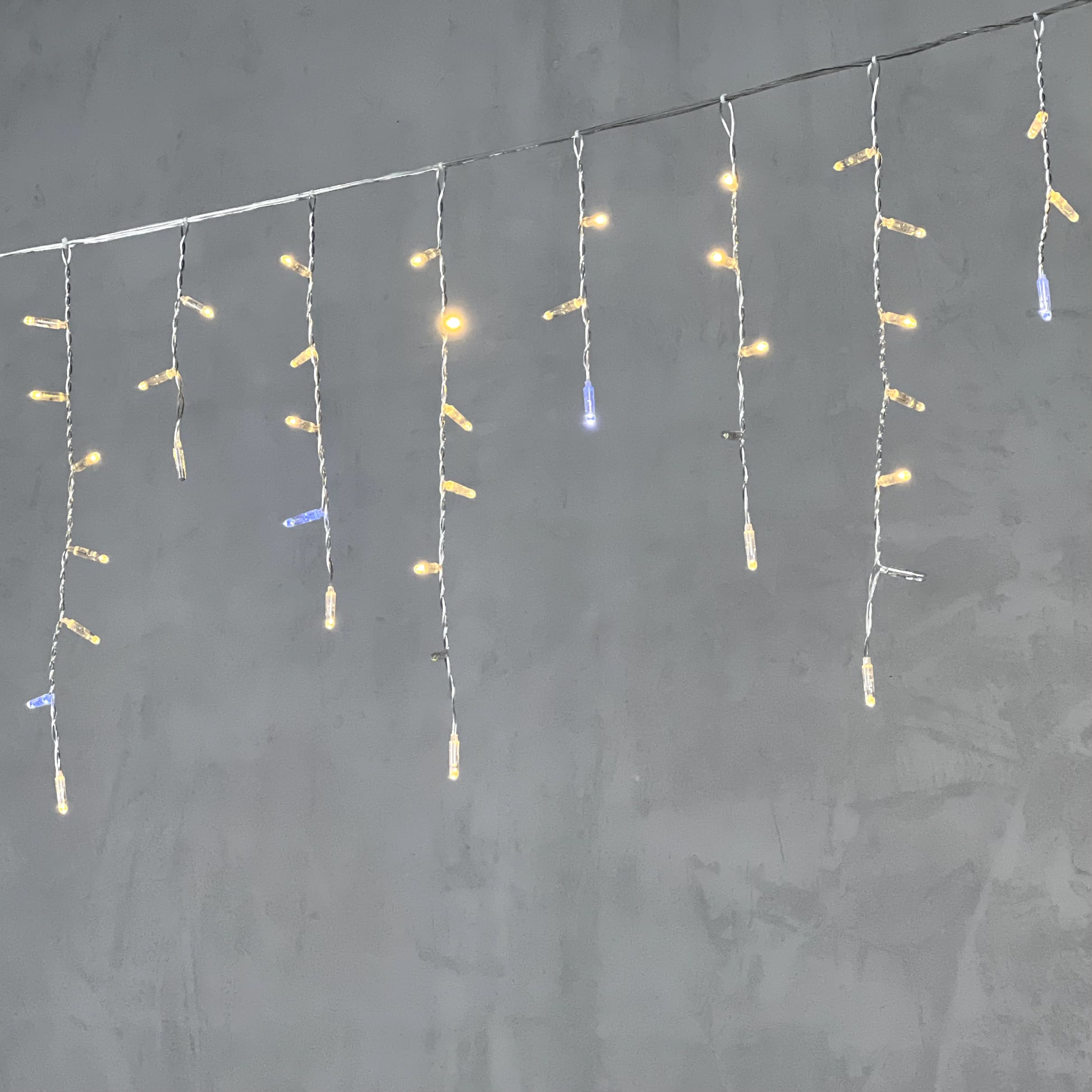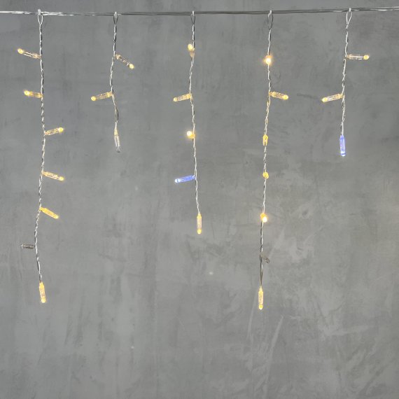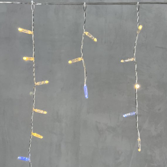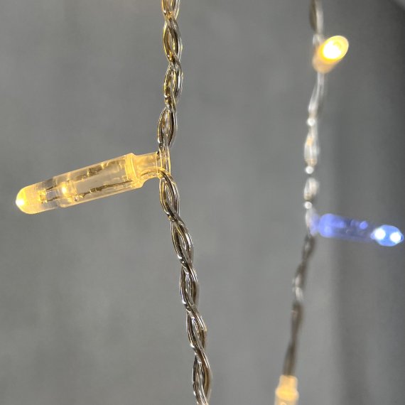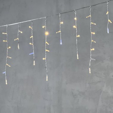Гирлянда "Бахрома" ("Айсикл") представляет собой гибкий горизонтальный шнур со свисающими вертикально нитями разной длины, на которых через каждые 10 сантиметров располагаются светодиоды.