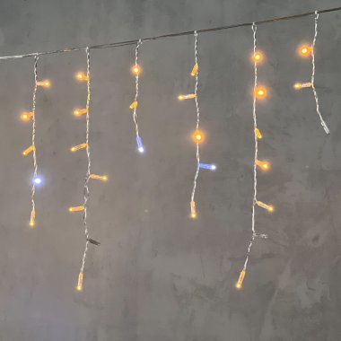 Гирлянда "Бахрома" ("Айсикл") представляет собой гибкий горизонтальный шнур со свисающими вертикально нитями разной длины, на которых через каждые 10 сантиметров располагаются светодиоды.