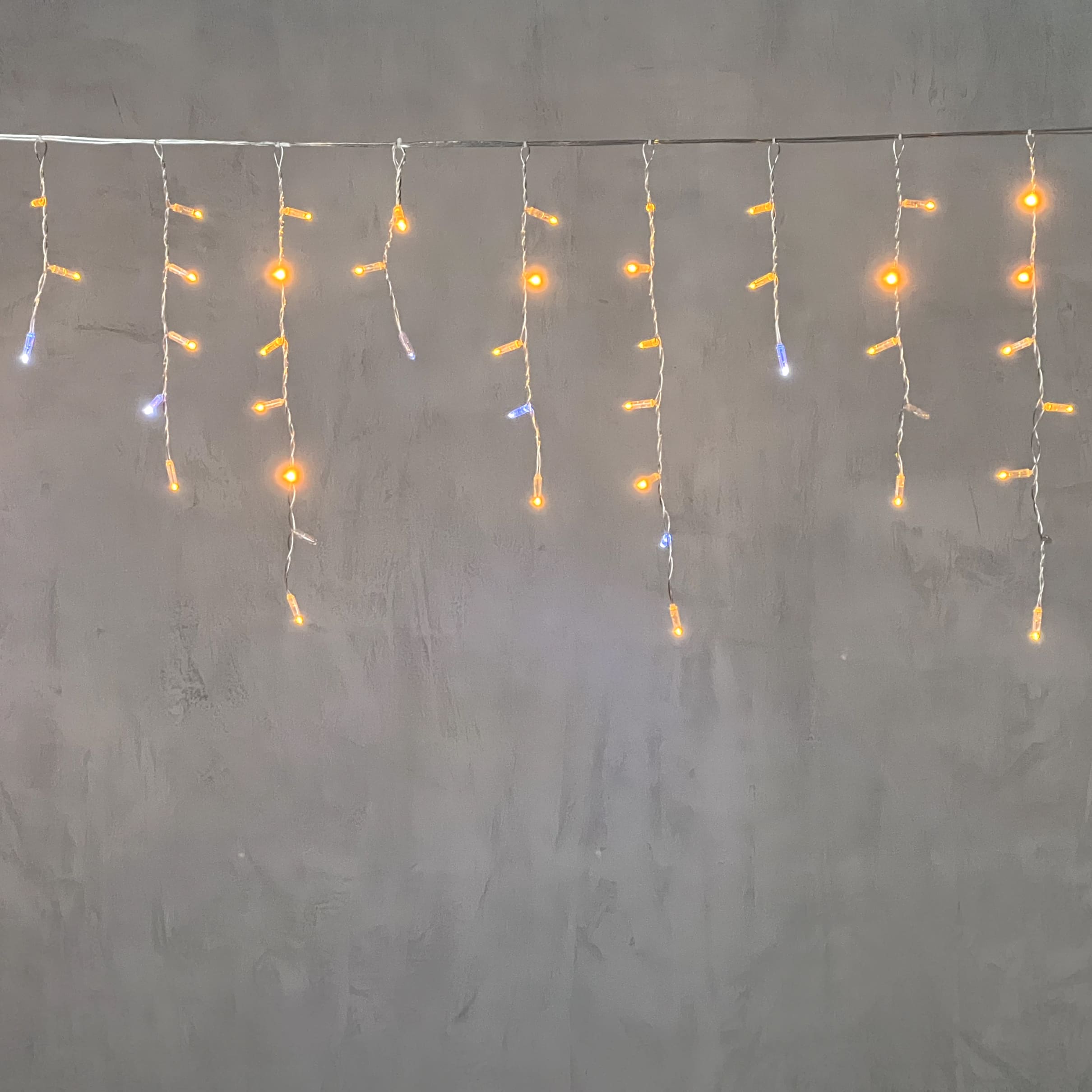 Светодиодная бахрома с колпачком 3,1x0,5м, прозр. пр. желтый (мерцание БЕЛЫЙ ДИОД),