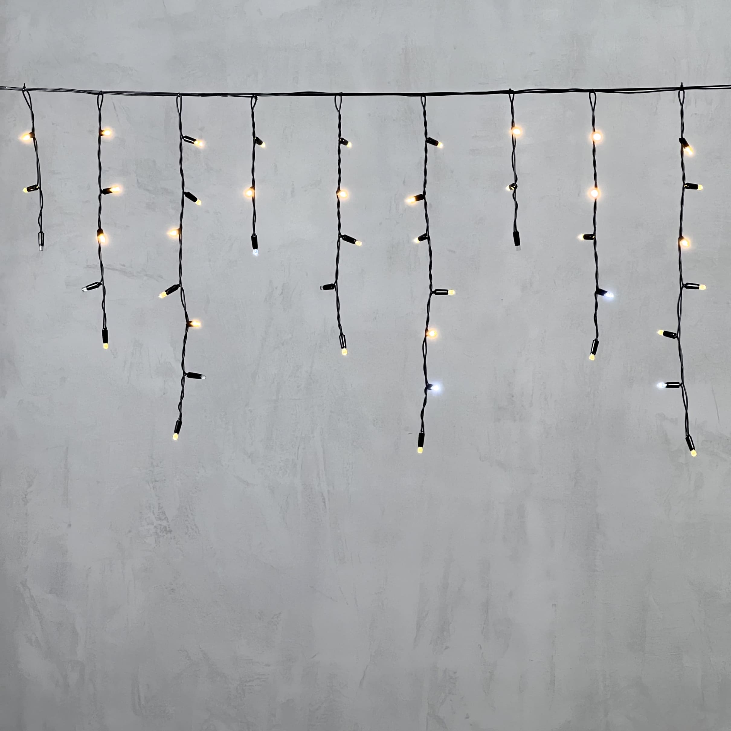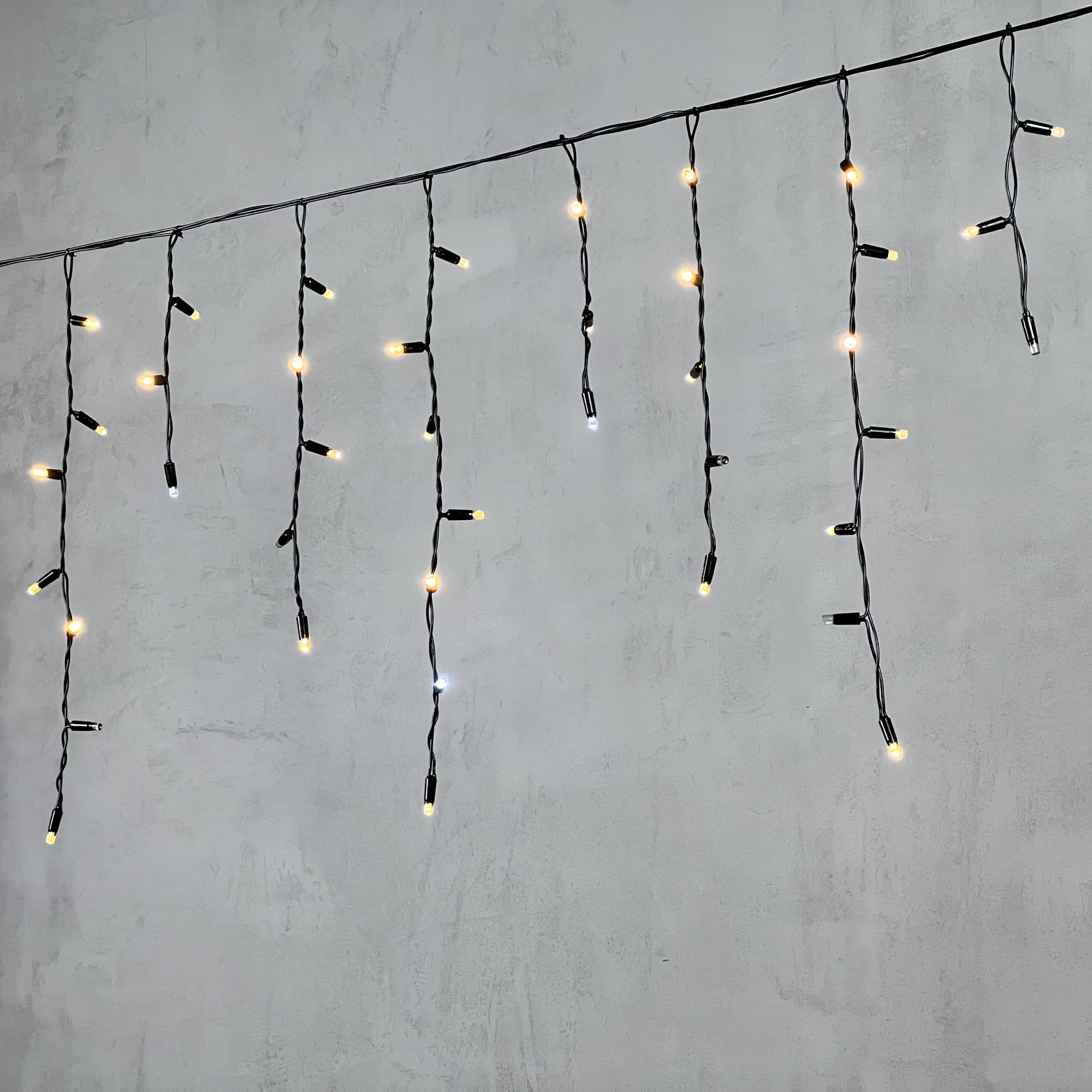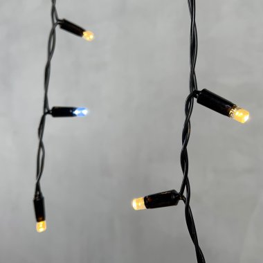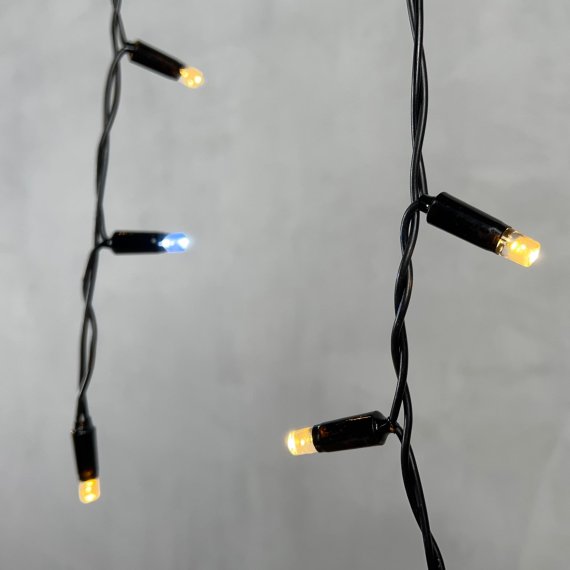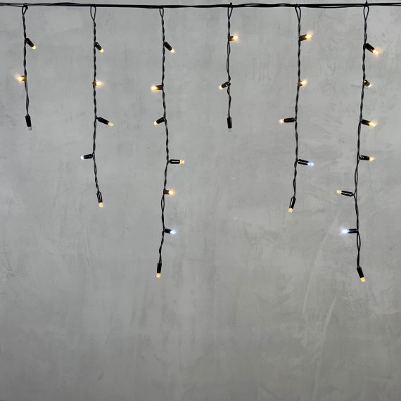 Гирлянда Бахрома с Колпачком 3,1 x 0,5 м Тепло-Белая с Мерцанием Белого Диода 220В, 120 LED, Провод Черный ПВХ, IP65