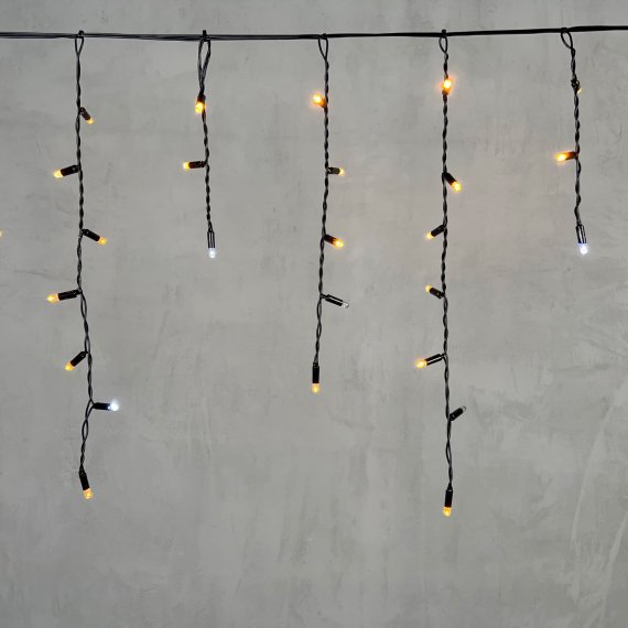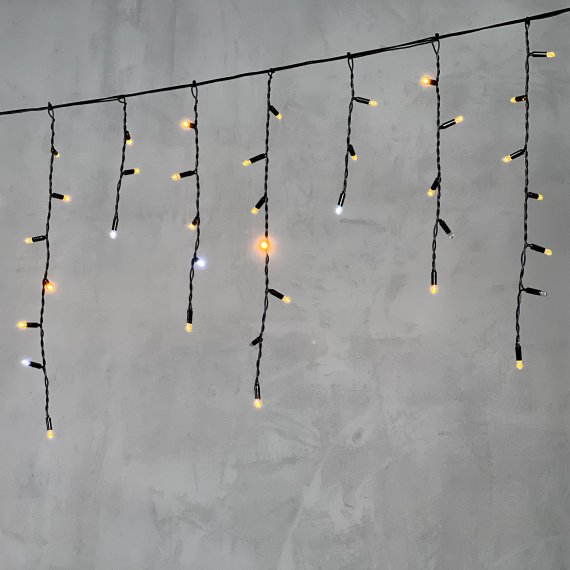 Гирлянда Бахрома с Колпачком 3,1 x 0,5 м Жёлтая с Мерцанием Белого Диода 220В, 120 LED, Провод Черный ПВХ, IP65